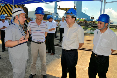 Party chief of Jiangmen city, deputy to the NPC Rongkai Mao with government leadership inspected JNS on Aug 19th.2015, after a short shipyard tour and presentation by JNS,Mao said JNS should promote development of the local economy with groundbreaking idea and perspective.
