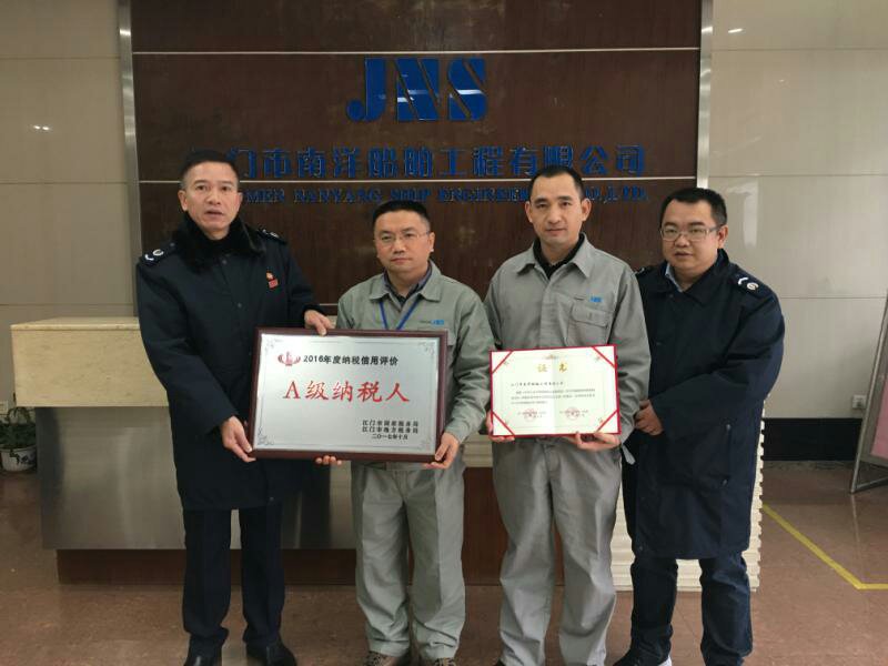 JNS won the annual title of A-class taxpayer rate paying credit grade in 2016 credit rank evaluation.