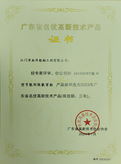 资质荣誉您当前位置: 开云电子(中国)有限公司官网 > 关于JNS > 资质荣誉 > 《40500DWT敞开口节能环保散货船》被认定为广东省高新技术产品