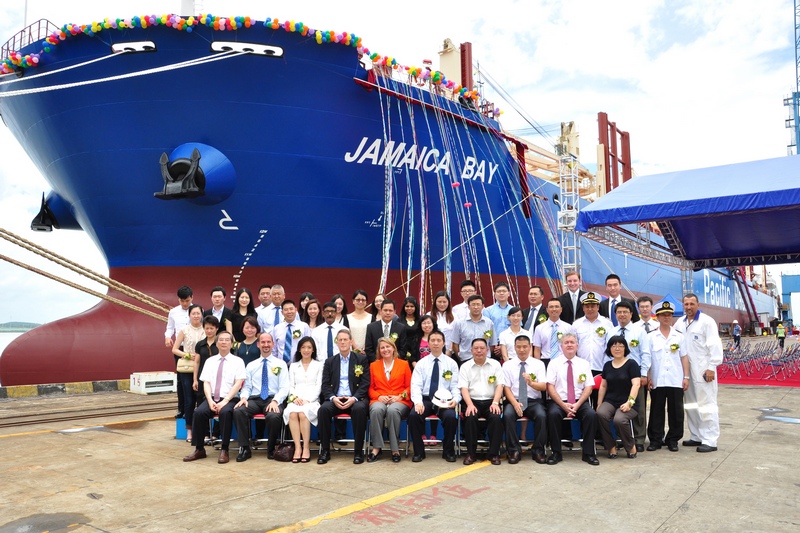 仪式致辞中,公司副总经理安波先生表示,JNS132船是我司与太平洋航运公司再度牵手合作后,建造的第3艘新型37000载重吨散货船, 南洋船舶一直致力于提高产品质量,相信JNS132在已交付船的基础上更进一步,这也是全体南洋人不懈努力的结果。广东省金属材料公司副总经理丛明源先生在致辞中表示,目前形势下,JNS132船的孕育是辛苦的但也是幸福的,她饱含了三方真诚合作的汗水和殷殷期盼,相信三方能在以后共迈征程,越迈越好。太平洋航运有限公司集团公司秘书、风险部董事Kitty Mok女士在致辞中表示,太平洋在JNS建造的这一系列船均已“J”开头,以纪念她的出生地江门和建造者JNS,而Jamiaca Bay则是美国长岛南部的海域,也是太平洋航运很多客户的所在地,JAMIACA BAY号以后会不时地出入该区域,以运输比如土耳其、智利的矿盐、巴西的白糖、美国的贵金属等物资。最后,Kitty Mok女士说“非常感谢JNS的朋友们为了建造品质一流的船舶所作出的努力,相信即使在目前极具挑战性的干散货船市场环境下,新船加入也将为我们团队添加不少的价值”。