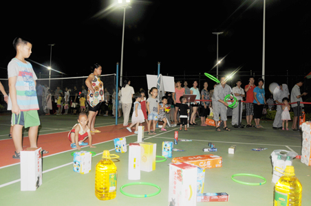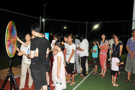 2014728日晚上,主题为“相约七月,共享快乐”的第四届家庭日活动在公司宿舍区隆重举行,近百名小孩和400余名公司员工及家属参与了当晚的活动,当晚的活动共设置了8个游戏,游戏中设置有丰富的奖品,员工和家属参与积极,活动开始后不久部分游戏项目的参与人员已经排起了长龙。活动现场更是人声鼎沸、热闹非凡。
