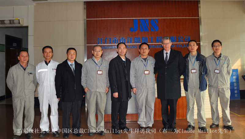 2015年1月14日上午,BV船级社北亚及中国区总裁Claude Maillot(马优)先生来我司访问,BV中国南方区总经理黄志华先生,南方区市场经理谢正祥先生、BV驻我司项目负责人姜志刚先生陪同。公司黄总、安总、李总热情接待了马优先生一行。