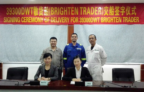 2017年1月12日上午,开云电子(中国)有限公司官网举办了39300载重吨散货船JNS149的交船签字仪式,船东和我司双方代表出席。