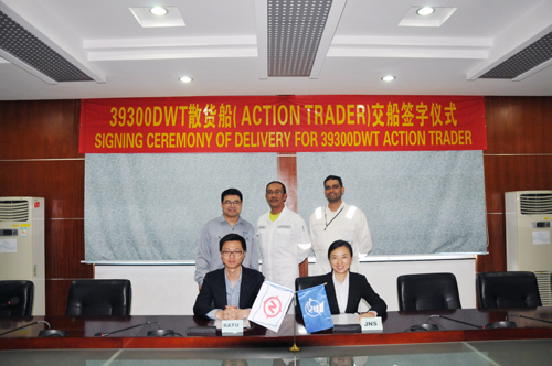 我司为NISSHIN建造的39300载重吨散货船“ACTION TRADER”号顺利交付