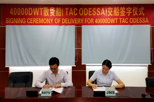 2021年5月25日,JNS179船TAC ODESSA号交接签字,当天下午启程远航。同时,JNS179船是JNS建造的第八十艘。