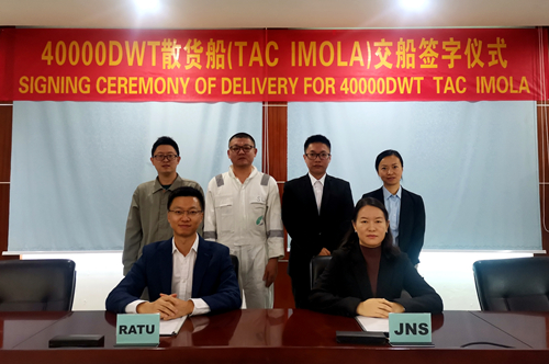 2021年11月11日,JNS181船TAC IMOLA号交接签字,顺利扬帆远航。