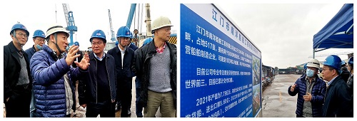 在南洋船坞边上,林锡波边走边看,认真听取企业的介绍,深入了解企业的复工复产和企业基本运营状况,他感谢南洋多年来对新会经济发展作出的积极贡献,鼓励南洋努力开拓市场,进一步做优做强,为新会经济作出更大贡献。